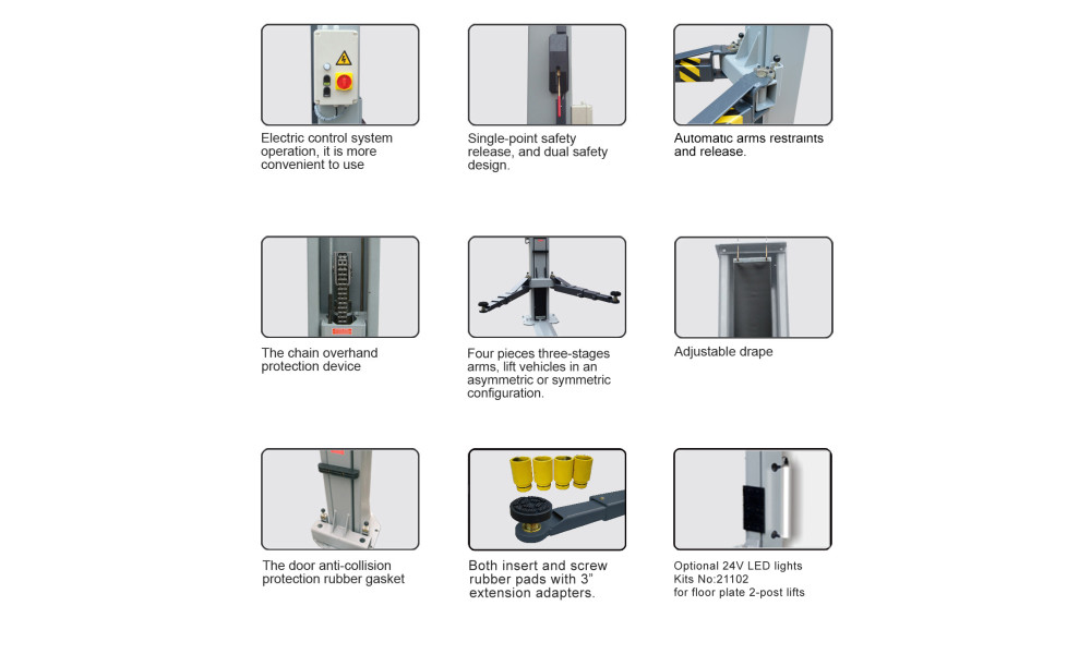 Tõstuki langetamiseks on kang juhtpostil, seega ei pea minema postide juurde lukustusi avama, nagu enamusel samalaadsetel tõstukitel